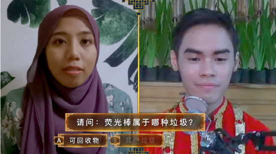 來自馬來西亞(左)以及印尼(右)的選手在參加由中國舉辦的漢語競賽《漢語橋》