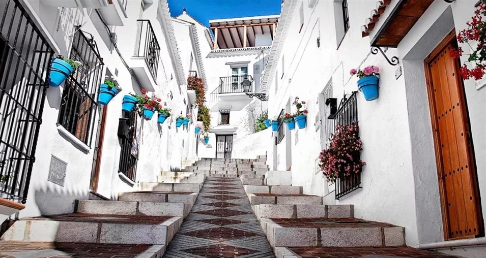 米哈斯是安達(dá)盧西亞省太陽(yáng)海岸山區(qū)的一個(gè)小鎮(zhèn),人稱“白色小鎮(zhèn)”。米哈斯分為山上山下兩部分,山下是米哈斯海岸,太陽(yáng)海岸的組成部分之一,山上綠樹(shù)環(huán)抱中的是米哈斯小鎮(zhèn)。小鎮(zhèn)上已有上千年歷史的白色建筑群坐落在山巒上,俯視著地中海,也眺望著大海對(duì)面的非洲大陸?!鞍咨℃?zhèn)”的美稱因此而來(lái)。