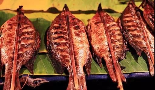老撾多河流,自然產(chǎn)好魚,這里的魚個大柔嫩還鮮美多汁。當(dāng)?shù)厝俗钕矚g將這種扁魚烤著吃。而且烤的方法很獨(dú)特,把魚內(nèi)臟去凈后塞上一把新鮮的檸檬草。不但去腥,還讓魚平添一份檸檬的清香。最地道的老撾烤魚吃法是用生的綠菜葉子包裹著涼米粉、生茄子和蘸著調(diào)料的魚肉包一個大包,一口吞到嘴里,非常鮮嫩爽口。