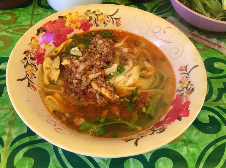 老撾語叫fer,基本跟中文里的“粉兒”發(fā)音一樣,是老撾的標(biāo)準(zhǔn)餐食,早中晚都可以吃到,分米粉和黃面條,英文統(tǒng)稱Noodle soup,湯汁非常鮮美,搭配一些雞肉、牛肉或者豬肉,同時再另配一盤由豇豆、卷心菜、薄荷葉、紫蘇葉構(gòu)成的純生菜,食客可以根據(jù)自己的口味加魚露、青檸汁、干辣椒或是泰式辣椒醬,味道極佳。