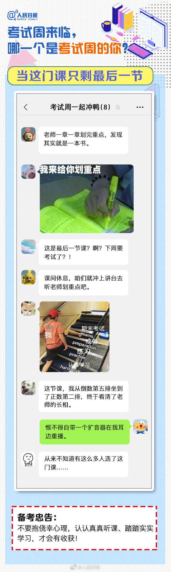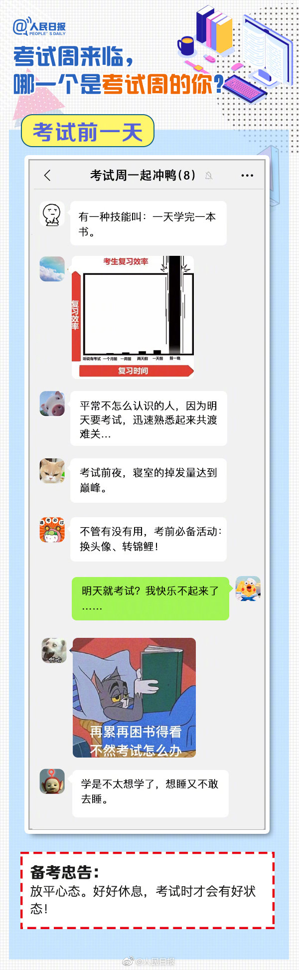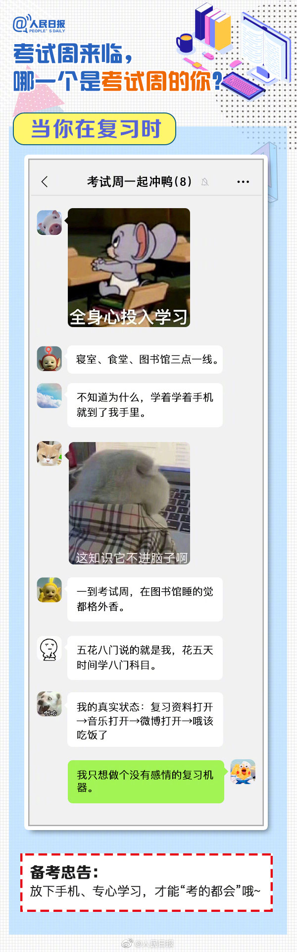 又到考試周,復習中的你,狀態(tài)如何?“寢室、食堂、圖書館三點一線”、“一天學完一本書”、“復習到頭禿”…這是考試周的你嗎?