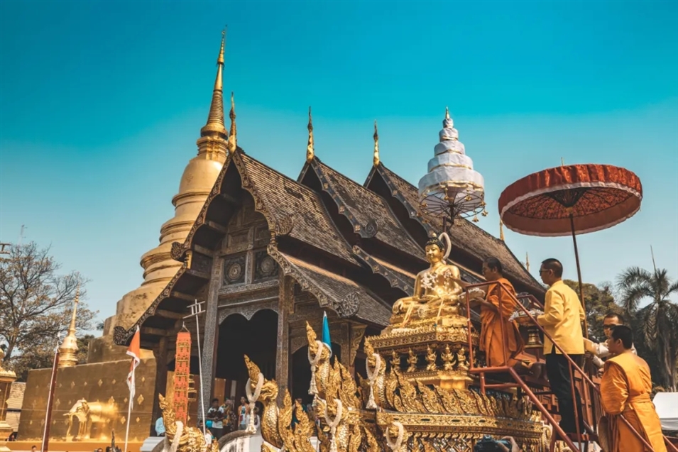 4月13日這天代表著一年的終結(jié),被稱為“馬哈宋干日”。作為一個(gè)全國(guó)大多數(shù)人們都信奉佛教的國(guó)家,宋干節(jié)的一天就是從前往寺廟開始,從虔誠(chéng)地供奉物品到用干凈的水清洗佛像,甚至還會(huì)有佛像在街道上巡游。獨(dú)特的宗教文化給泰國(guó)的節(jié)日氛圍帶來(lái)一絲與眾不同的氣氛。