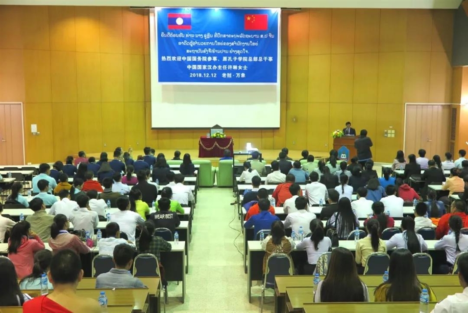 12月12日上午,中國(guó)國(guó)務(wù)院參事、原孔子學(xué)院總部總干事、中國(guó)國(guó)家漢辦主任許琳應(yīng)邀訪問(wèn)老撾國(guó)立大學(xué),并在老撾國(guó)立大學(xué)舉辦了題為《“一帶一路”與老撾和東盟》的主題講座。