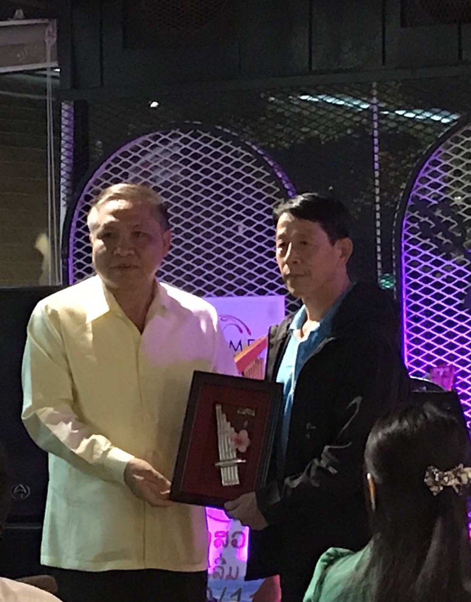11號(hào)晚上老撾國(guó)立大學(xué)校長(zhǎng)宋西·諾潘賽為劉傳書老師、王慶陽(yáng)老師頒發(fā)紀(jì)念品,表示對(duì)兩位老師的感謝,感謝兩位老師對(duì)老撾國(guó)立大學(xué)的支持與幫助,并希望兩位老師以后能常來(lái)國(guó)立大學(xué)交流訪問。