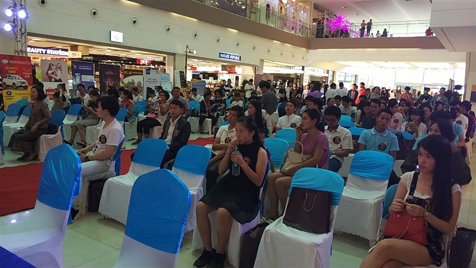 20日中午,萬象中心大廳坐滿了人,現(xiàn)場布置以藍(lán)白為主,看起來整潔典雅。主持人的開場白點(diǎn)燃現(xiàn)場觀眾的熱情,比賽正式拉開帷幕。